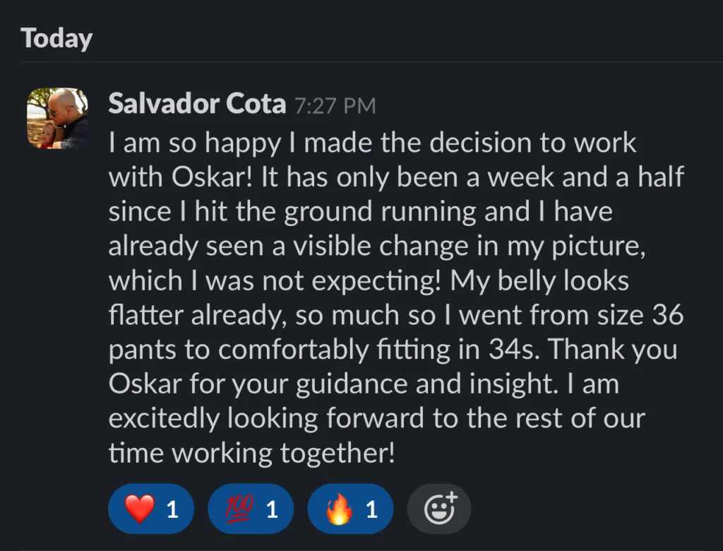 My system has helped hundreds of busy professionals shed fat, build muscle, and develop a strong, motivated mindset—all while maintaining a hectic, sedentary lifestyle.